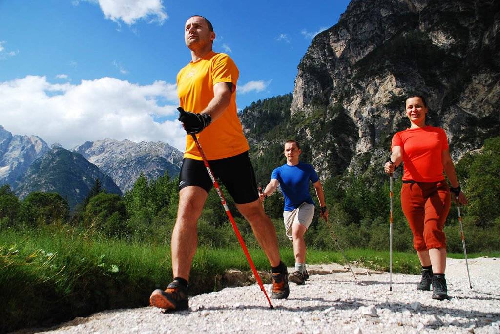 Данный тип физической нагрузки дает возможность одновременно задействовать мышцы ног и пресса, обеспечивающих ток крови в нужном ритме, и особо показан пациентам, которые ведут малоподвижный образ жизни. Опора на палки позволяет избежать перегрузки суставов голеностопа и колен;