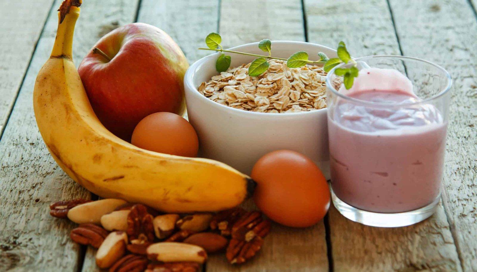 - 250 мл обезжиренного молока, 3 столовые ложки зерновых хлопьев, 100 г обезжиренного творога, 1 банан, 2 столовые ложки меда;