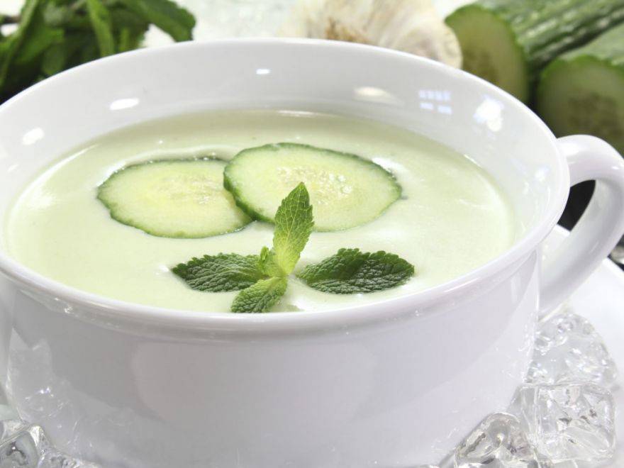 - На завтрак нарезаем один огурец, смешиваем его с измельченной петрушкой, заправляем йогуртом. Выпиваем кофе или чай без сахара;