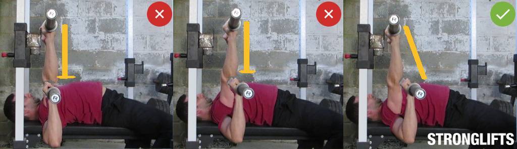 Следите за положением локтей в нижней точке траектории. Идеальным является угол примерно в 75 градусов. По сути, локти не должны ни прижиматься к туловищу (это ухудшает механику движения), ни быть отведенными перпендикулярно в стороны (что, в свою очередь, крайне травмоопасно). Не забывайте следить за тем, чтобы запястья не заламывались.