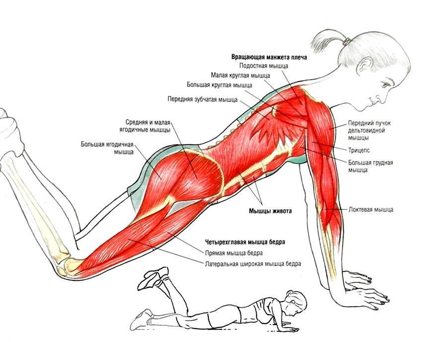 Работают мышцы ягодиц, задней поверхности бедер и поясницы.
