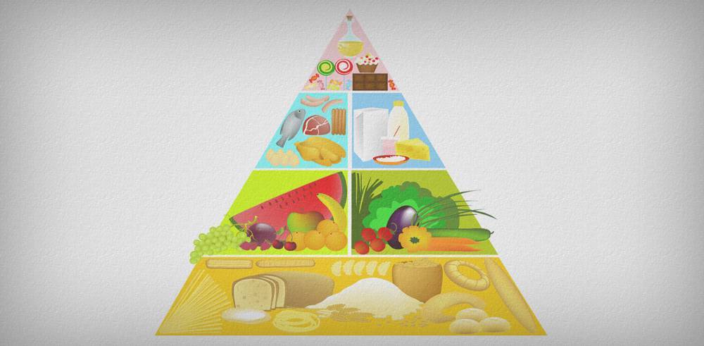 Вот строение пирамиды с перечнем необходимых продуктов и их свойств снизу вверх: