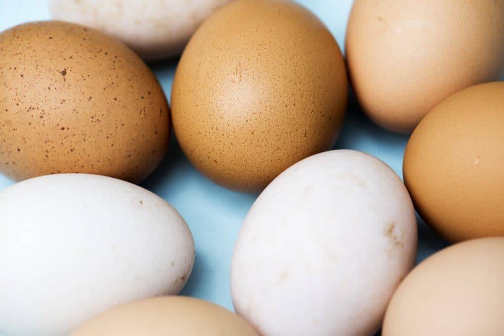 Например, белоснежные, без малейшего намека на бежевый оттенок, яйца несут куры пород Русская белая, Ленинградская серая, Минорка. Но и это ещё далеко не все. Имеется несколько пород несушек, которые откладывают зелёные или голубые яйца. Эти цвета обеспечивает вырабатываемый селезенкой билирубин, а пигментация скорлупы происходит в момент её образования. К таким породам относятся Оливковый эггерс, Араукана, Амераукана и Легбар.