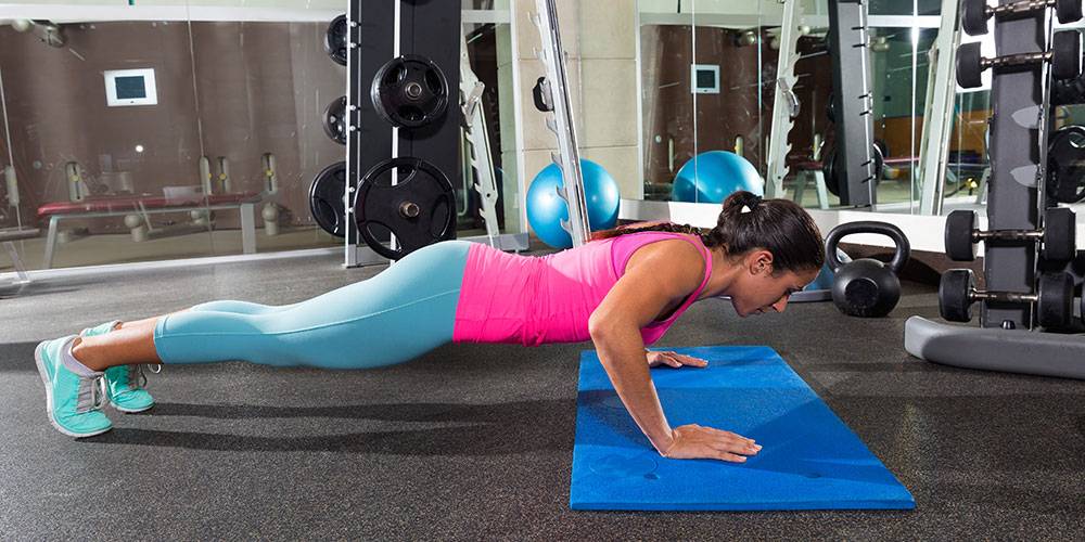 - Для проработки средней части груди ноги и руки должны оставаться на полу, корпус – параллельно полу. Таким образом, для занятий, направленных на среднюю часть груди, возвышение не требуется.