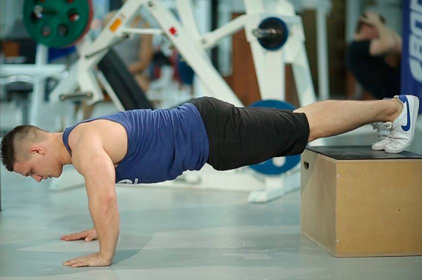 Отжимания с наклоном вверх рекомендуются начинающим спортсменам или тем, кому трудно даются классические отжимания от пола. Здесь сильно снижается нагрузка на локтевые суставы. Позволяет работать в энергосберегающим режиме, считается самым безопасным видом отжимания.