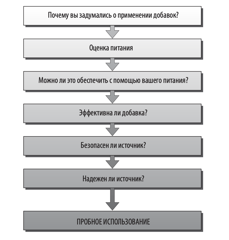 Чтобы принять решение о том, добавлять ли в рацион ту или иную пищевую добавку, стоит ответить себе на несколько вопросов. Схематично процесс выглядит следующим образом: