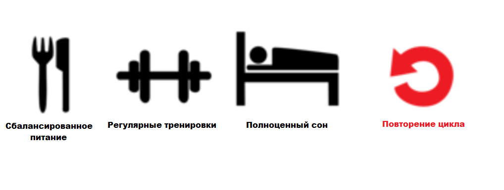 В первую очередь – здоровый сон. Не высыпаясь, нельзя рассчитывать на хорошие результаты тренировок. Чтобы восстановить силы за ночь, надо высыпаться. Засиживаясь допоздна и рано вставая на работу, люди они приходят на тренировку, на которую им не хватает сил. Одному человеку, чтобы выспаться, хватает шести часов, а другому – девять. Прислушивайтесь к себе, чтобы узнать этот показатель для себя.