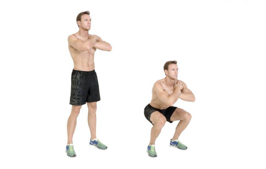 Без остановки на передышку снова примите упор присев и повторите последовательность действий еще 12-15 раз в наиболее быстром темпе.