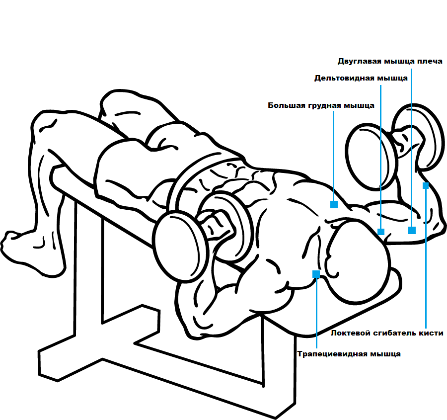Фото 11. Мышцы, которые включаются в работу при жиме гантелей лежа
