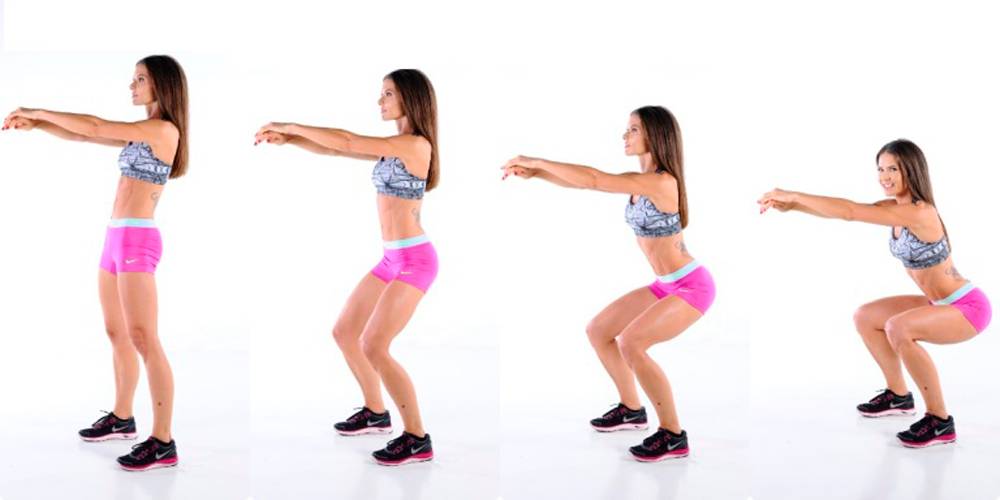 Классические приседания принято считать наиболее полезными и эффективными в борьбе с лишними килограммами: они активно укрепляют мышцы тела и способствуют эффективному жиросжиганию. В первую неделю занятий необходимо делать не менее 3 тренировок по 15 — 20 подходов с перерывом в 8 — 10 минут. Однако не стоит усердствовать с количеством повторений – чрезмерные усилия могут снизить эффективность занятий и нанести вред организму.