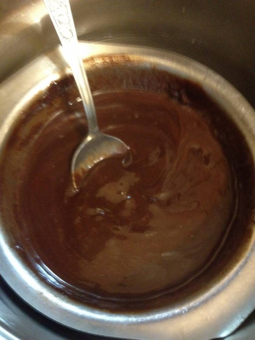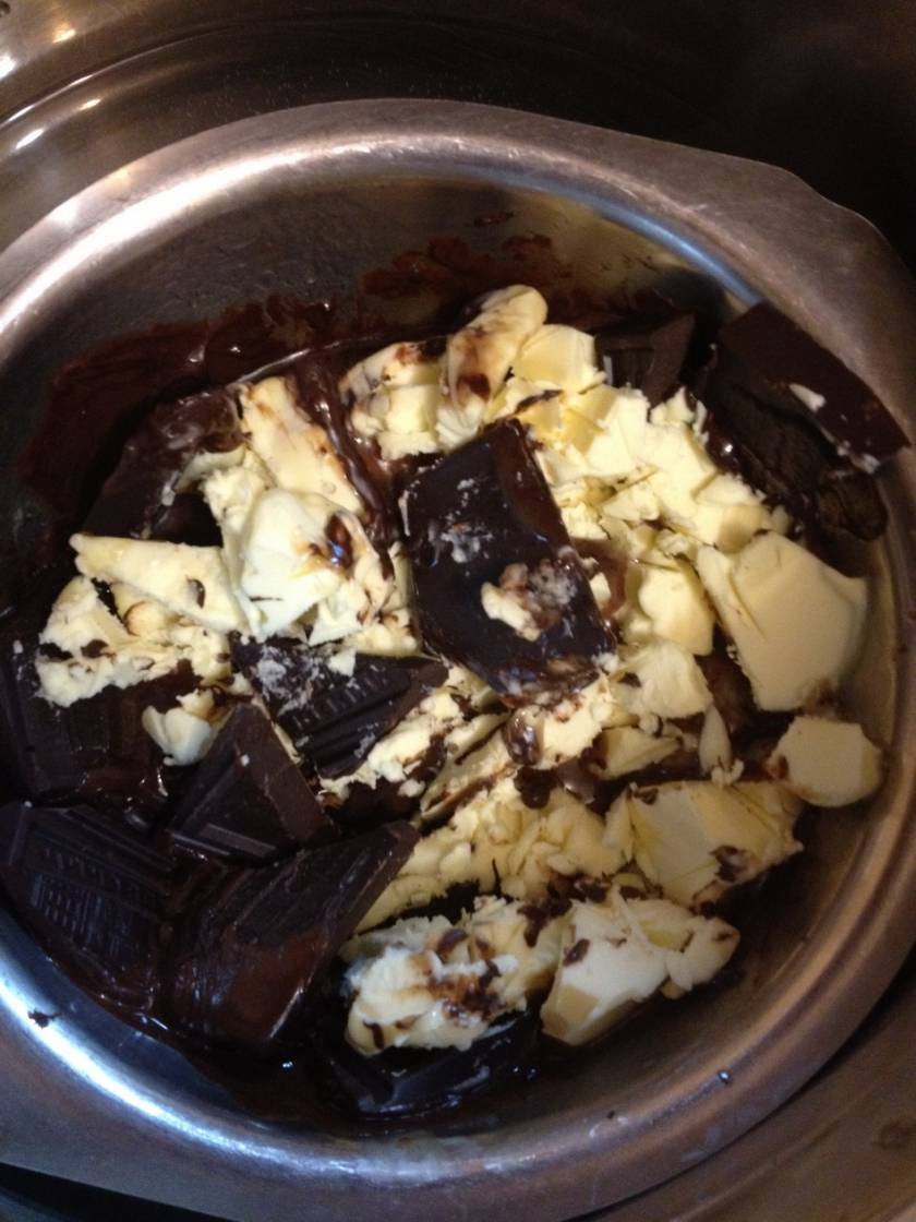 3) шоколадную массу нужно немного остудить, чтобы от нее не сварились яйца и в тоже время, чтобы шоколад был достаточно теплым для того, чтобы не начал застывать.