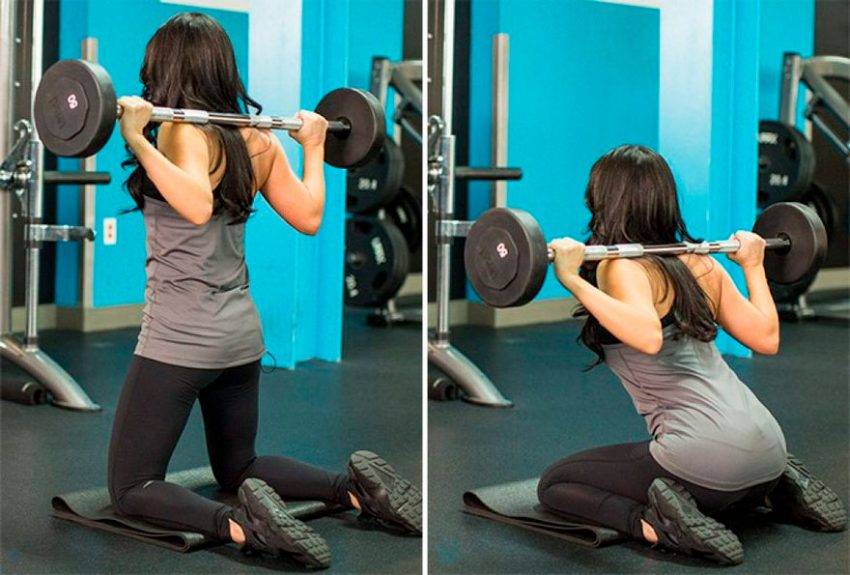 На заметку. Любые приседания, в том числе на коленях, лучше всего делать после гиперэкстензии. Мышцы спины будут хорошо разогреты и тебе легче будет работать с большими весами.