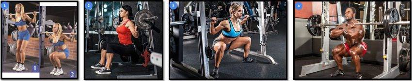 Помимо классического варианта выполнения приседаний в тренажере Смита, есть множество других.