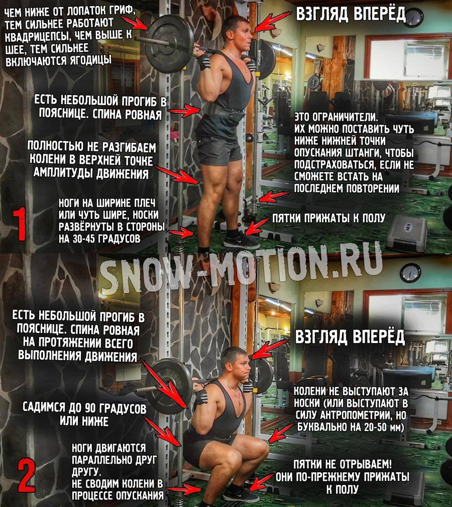 Для удобства, сделал для вас наглядную графику, как должны выполняться приседания в смите: