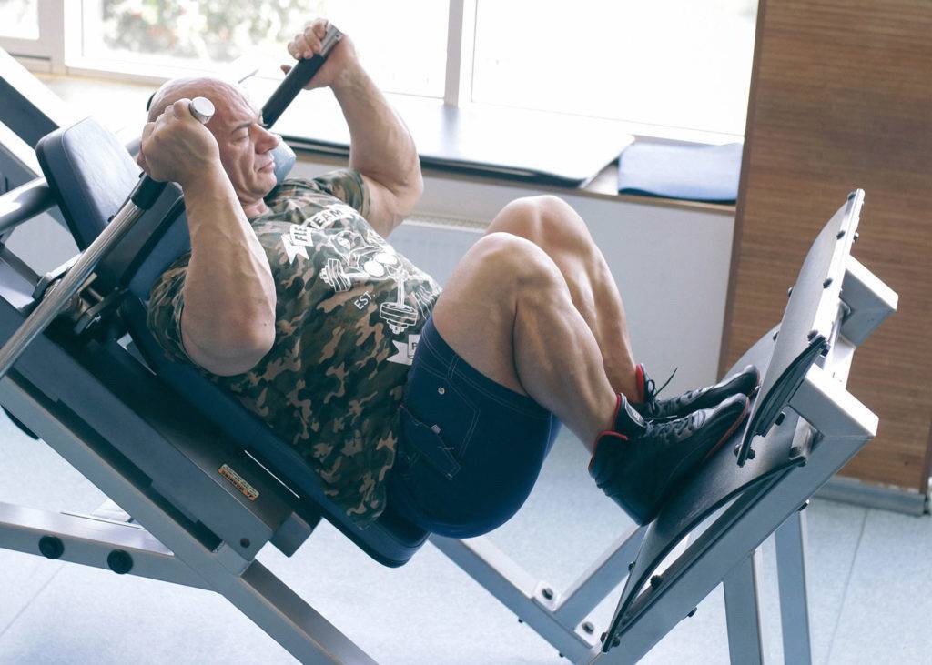 - Садимся в тренажер под специальные “подплечники”, прижимаясь спиной к тренажерной спинке.