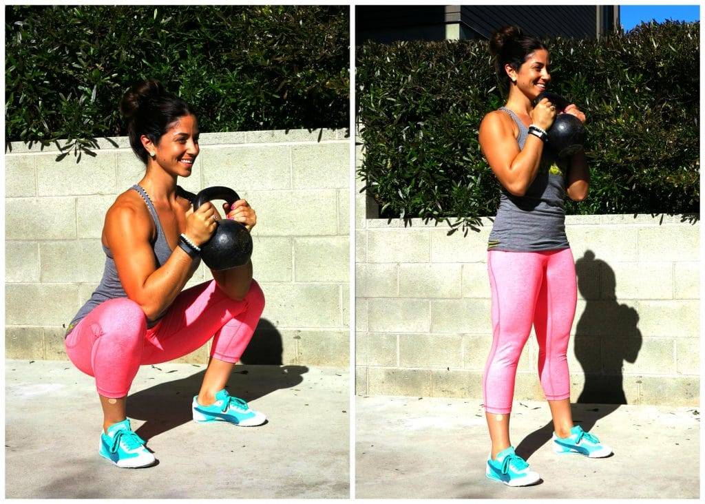 4. Отличное для отработки механики приседа упражнение — goblet squat. Они могут выполняться как с гирей, так и с гантелями.