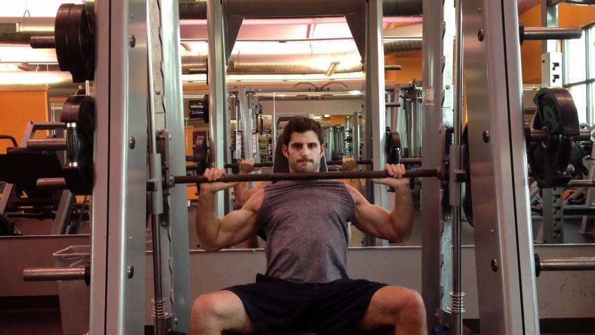 Особенно это касается варианта выполнения в машине Смита. Ведь из-за заданной тренажером траектории сложнее выполнять движение правильно. Приходится сильнее наклоняться вперед, что повышает риск травмы.