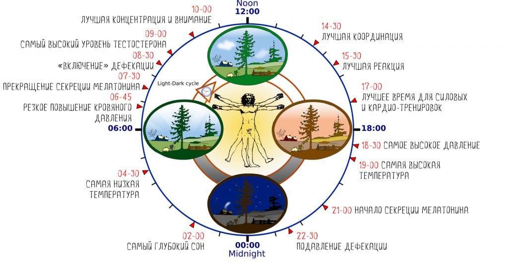 Циркадные ритмы управляют нашим сном, аппетитом, вниманием и концентрацией, температурой тела, активностью мозга, гормонами, обновлением клеток, ремонтом и многими другими вещами. Так, от них напрямую зависят уровни мелатонина (гормона сна) и кортизола (стрессового гормона, который обеспечивает организм глюкозой)