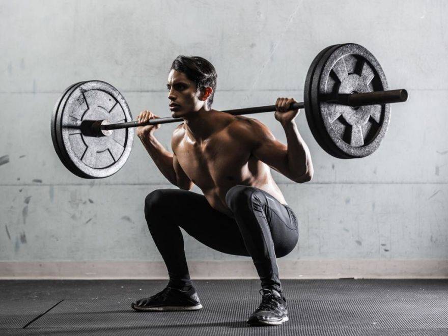 - Совершение приседаний с утяжелением в виде штанги позволяет качественно прокачивать целевые мышечные группы. Во время их выполнение необходимо соблюдать технику и держать спину в прямом положении для уменьшения риска получения травм позвоночника.