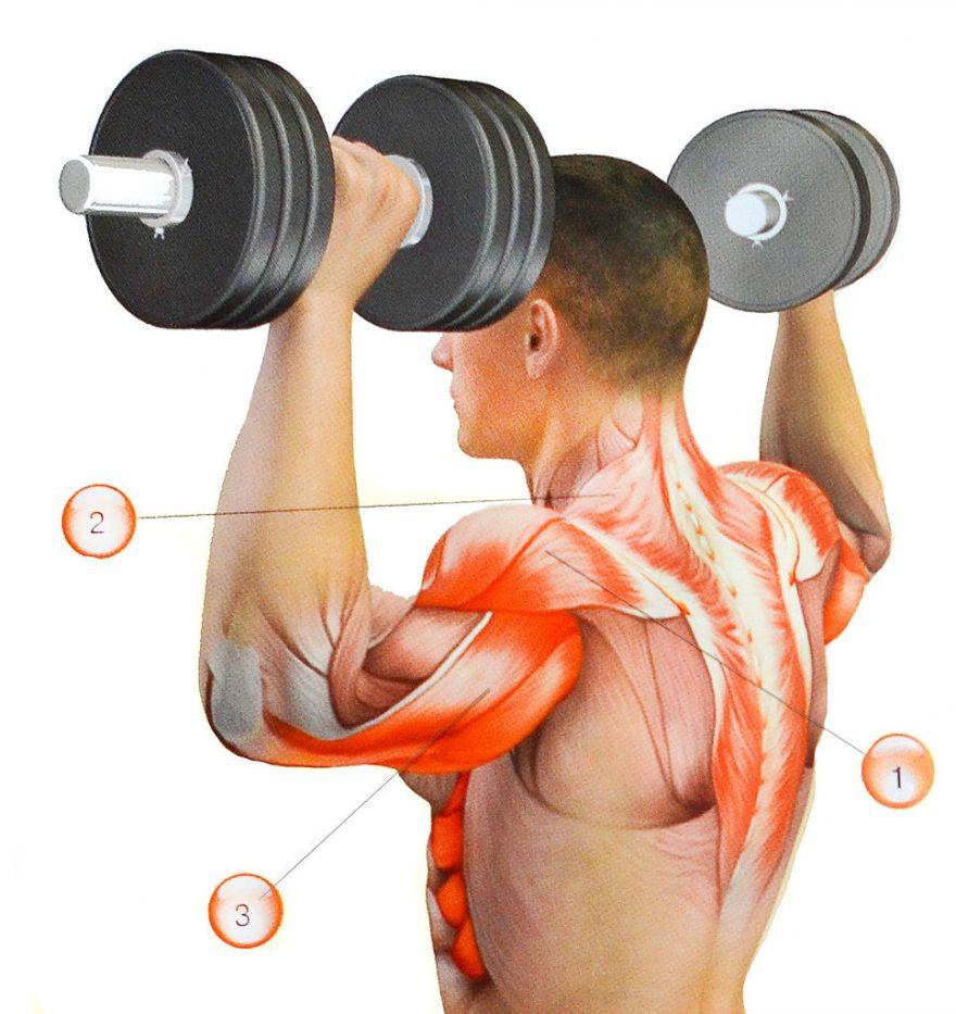 - Любой из вариантов французского жима обеспечит сильную нагрузку на обе целевые мышечные группы; для выполнения этого упражнения рекомендуется пользоваться штангой с Z-грифом.