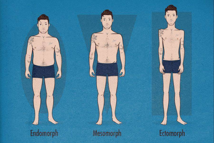 У каждого человека определённое телосложение. Проанализировав антропометрические данные, учёные пришли к выводу, что можно выделить три основных типа: эктоморф, эндоморф и мезоморф.