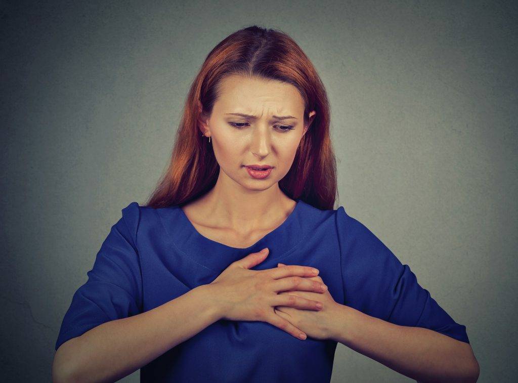 Неприятные ощущения, характеризующие инфаркт миокарда, локализуются посередине грудной клетки.