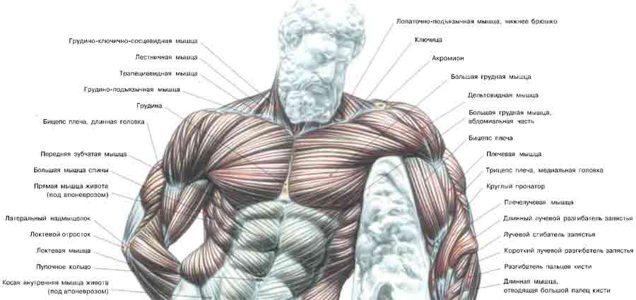 Верхний пояс конечностей состоит из множества мелких и крупных мускулов.