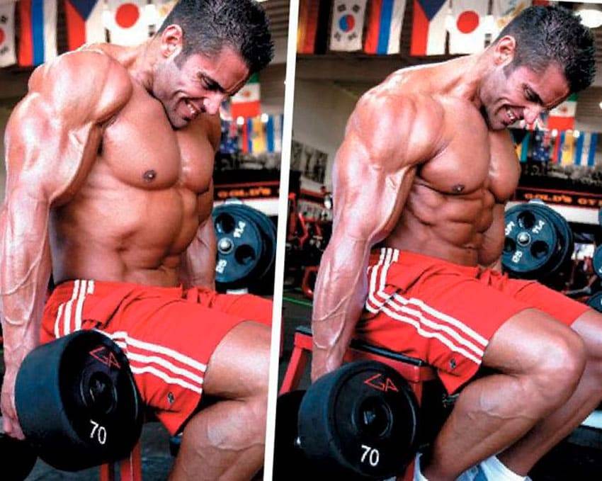 Однако чтобы добиться сочетания массивной передней трапеции со спиной, нужно сочетать два раза в неделю дни тренингов с дельтами и спиной.