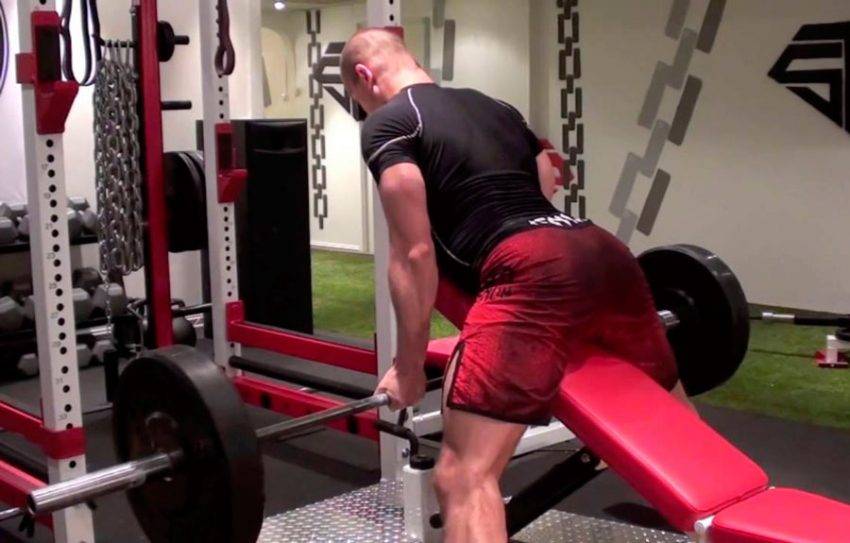 При легком наклоне вперед нагрузку можно сместить на средние и нижние пучки мышечных волокон трапеции. Однако безопасен лишь незначительный наклон прямой спины, без округления в плечах. Использовать этот прием можно только когда правильная техника доведена до автоматизма.