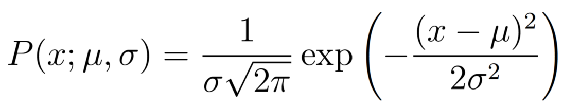Плотность вероятности наблюдения одной точки данных x, которая генерируется из распределения Гаусса, задается следующей формулой: