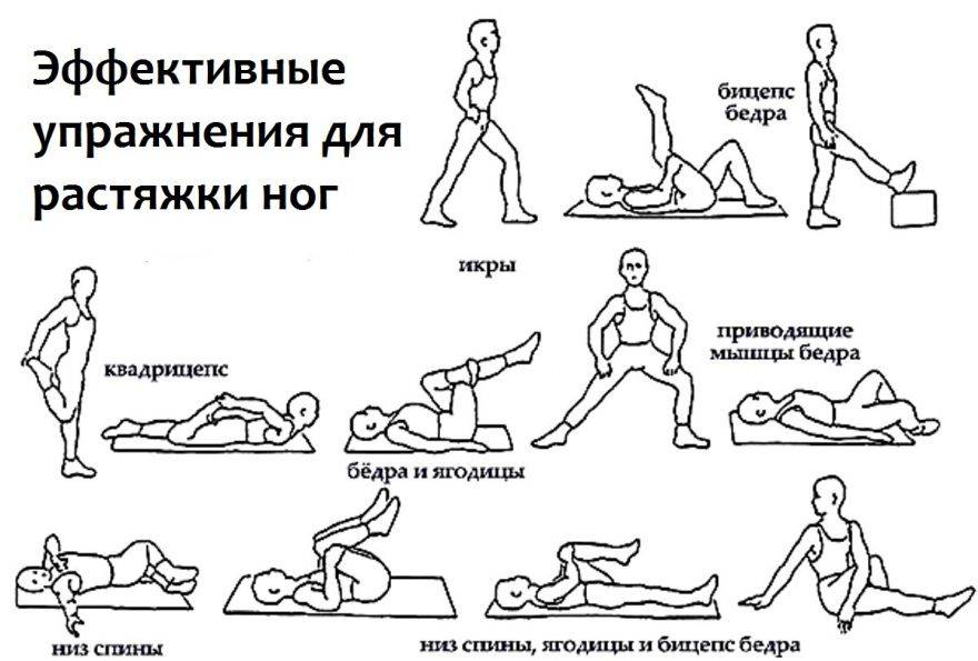 Для растяжки этой группы мышц необходимо делать упражнения сусилием, но стараться избегать сильной боли, поскольку сильные болевые ощущения могут дать обратный эффект и еще более зажать и без того зажатые мышцы.