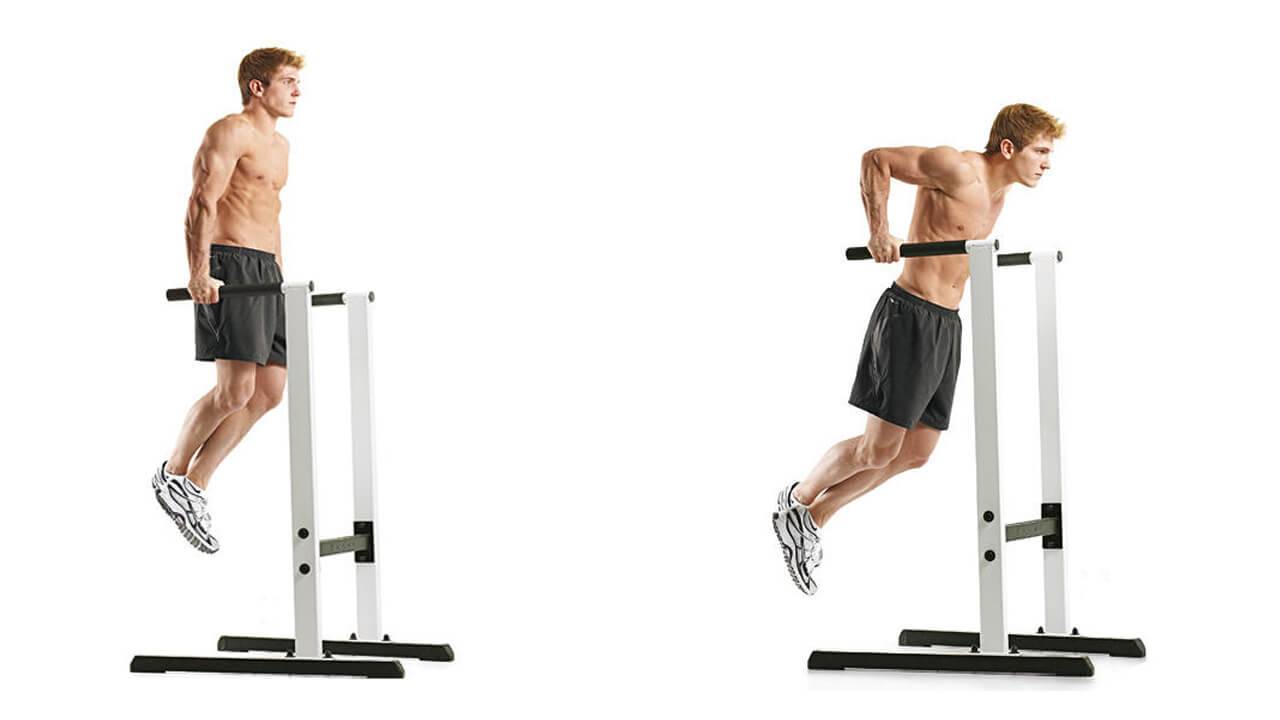 - Поместите ладони на перекладинах, выпрямив руки в локтевых суставах.