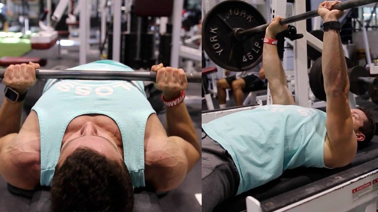 Это базовое многосуставное и довольно травмоопасное упражнение, при выполнении которого важно иметь крепкие связки локтевых суставов. Упражнение выполняется на жимовой скамье со стойками для штанги