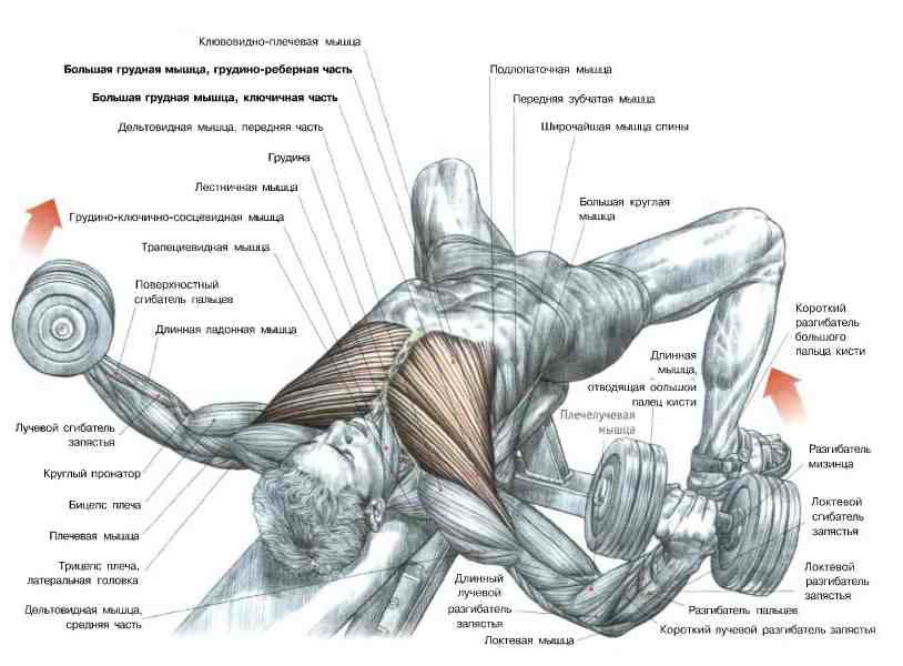 Прежде чем выполнять разводку гантелей лежа, спортсмену нужно знать, какие мышцы работают при этом.