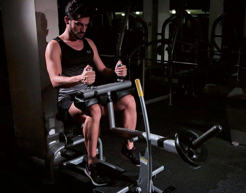 Нагрузку получат ягодицы, напрягатель фасции, крестцово-поясничный отдел, прямая бедра, нижний пресс. Корректируя положение сиденья, упражнение выполняют из вертикальной позиции и с отведенной назад спинкой.