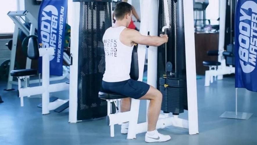 Техника выполнения обратного разведения в тренажере «бабочка»