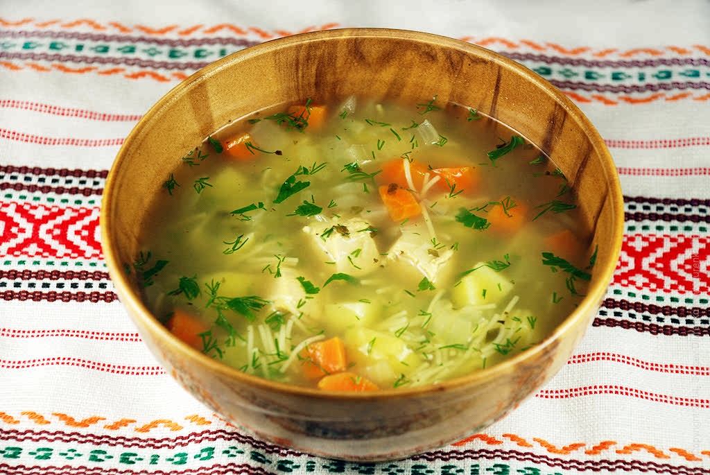 - Горячие бульоны, основанные на нежирном мясе, растительных продуктах.