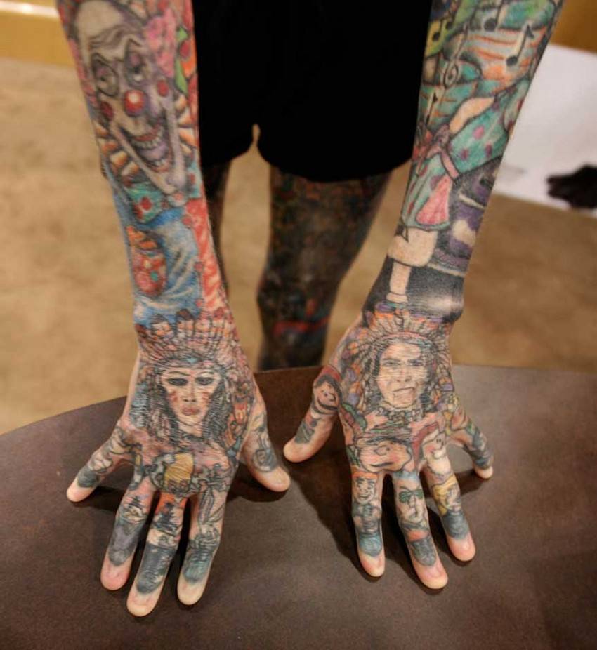 Рукава из нательных рисунков полностью оплетают запястья и плечи Гнусе.