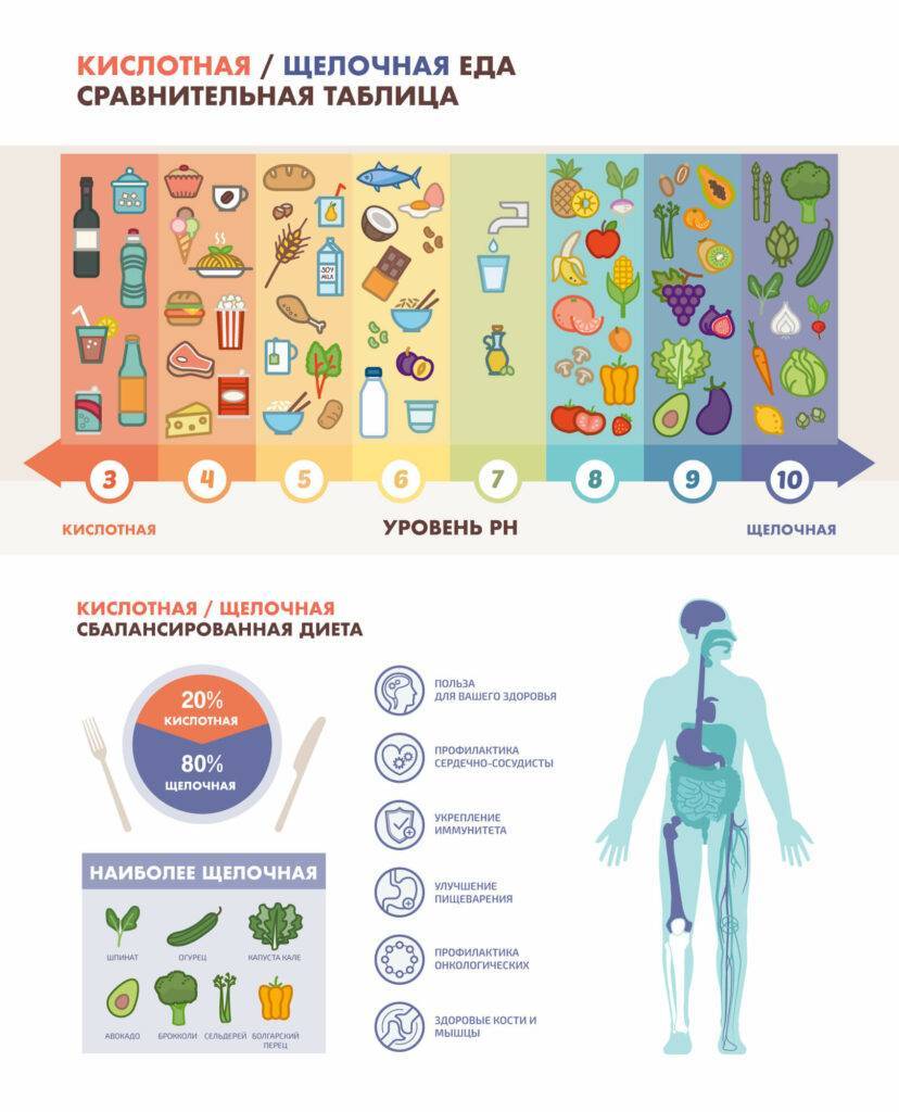 Полезные продукты для ощелачивания и запрещенные с повышенными кислотными показателями