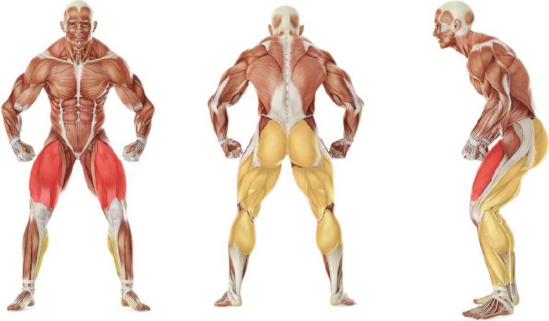 - В динамике – ягодицы, икры и бицепсы бедер, они помогают в движении
