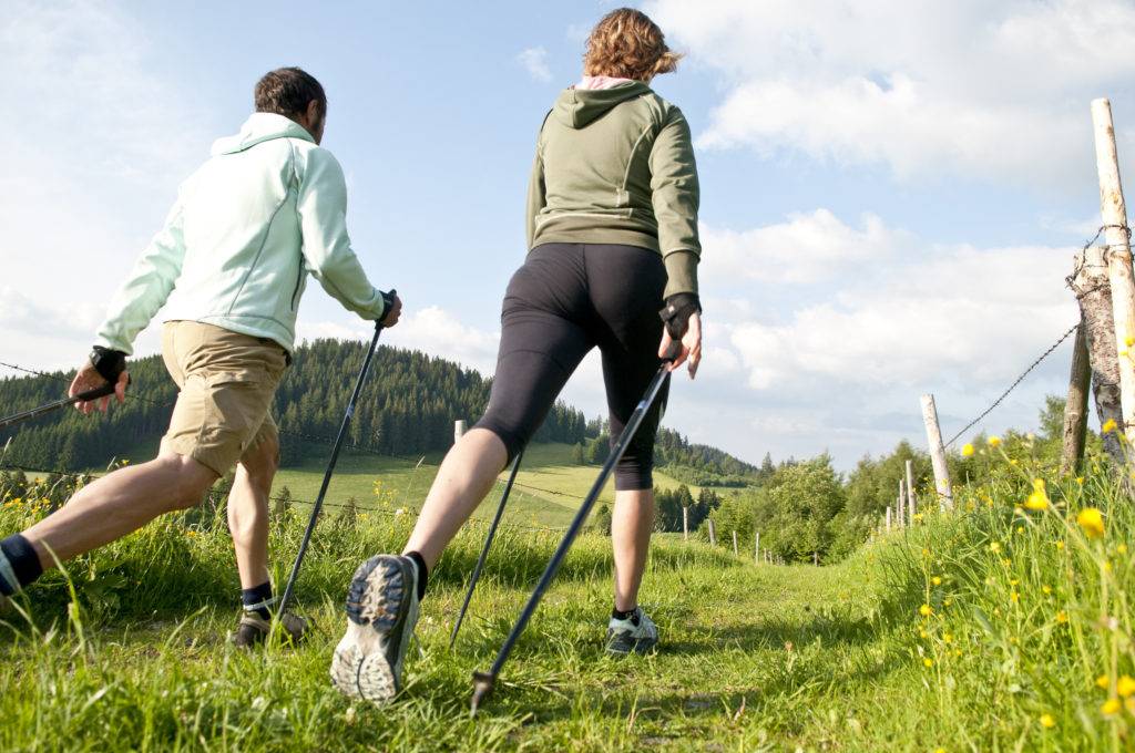 Скандинавская ходьба. Использование при ходьбе палок со специальными приспособлениями, напоминающими перчатки, усиливает нагрузку на верхнюю часть тела. Количество задействованных мышц увеличивается вдвое, соответственно, сжигается больше калорий. Чем шире размах рук, тем больше нагрузка.