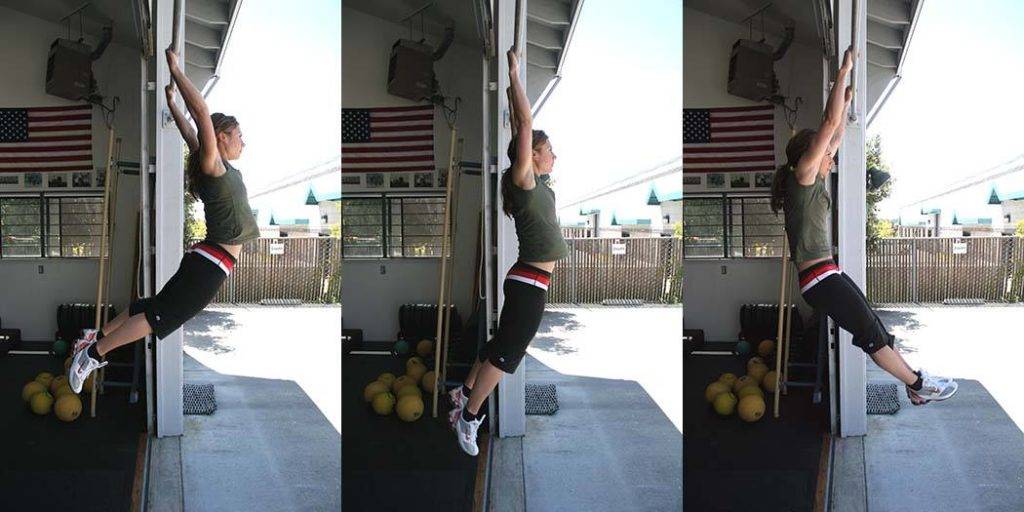 - Киппинг. В данной вариации в преодолевающей фазе к движению подключаются ноги, что представляет собой своеобразный читинг. Выглядит это так – в нижней точке, ноги сгибаются в коленях и подтягиваются к груди, а во время подъема распрямляются, создавая момент инерции. Это позволяет облегчить выжимание тела вверх. За счет такой техники можно выполнить больше повторений. Пользуется популярностью в кроссфите.