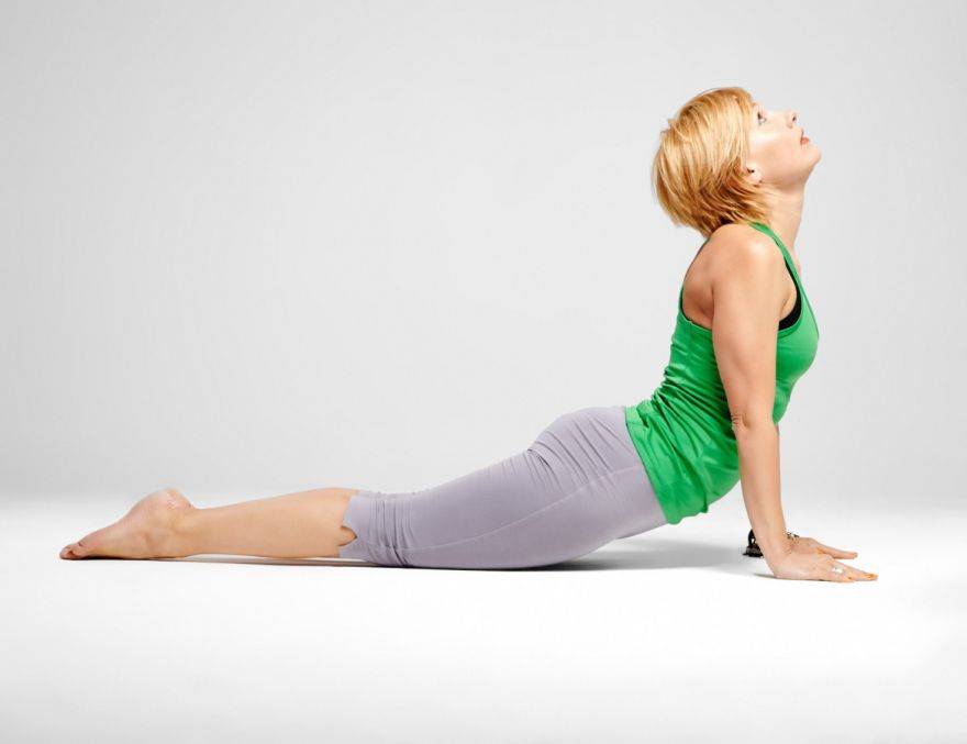 Поясничный отдел тренируют на коврике. Нужно лечь на живот и аккуратно поднять верхнюю часть туловища, опираясь на ровные руки.
