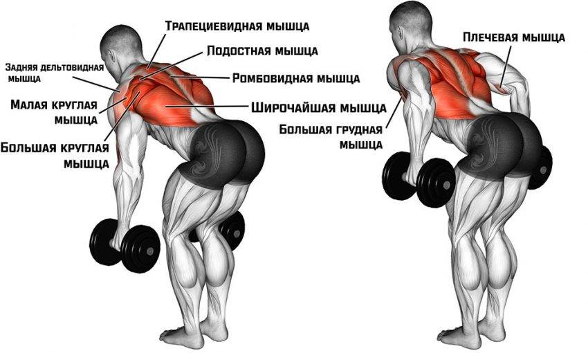 Тяга гантелей в наклоне: техника выполнения