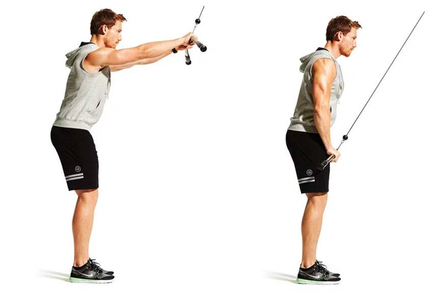 - тяните рукоять за счет приведения локтя, а не сокращения бицепса;