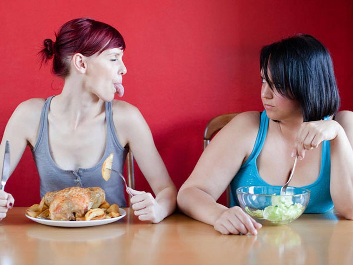 И у каждого из нас есть друг/подруга, которые едят все подряд, но не толстеют. Но когда вы посмотрите внимательно, увидите, что человек ест так много, как кажется. Это может быть их единственный прием пищи за день, они могут очень много двигаться и все сжигать, у них в ответ на избыток калорий повышается скорость обмена веществ. Или они компенсируют это переедание следующим днем, когда будут есть очень мало. Так что в целом они поддерживают свой вес.