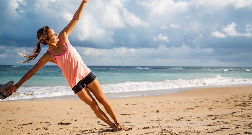Если вам повезло жить у моря, то тренировка на пляже станет отличным вариантом не только для тела, но и для души. На песке лучше всего заниматься босиком, все потому, что ноги будто бы тонут в песке и приходится прикладывать еще больше усилий, чтобы балансировать. Вследствие этого мышцы ног укрепляются, а в тренировке задействуется весь мышечный корпус. Рекомендации по программе тренировок для девушек на пляже следующие: начинаем как всегда с разминки. Идеальным вариантом станут выпады на обе ноги, а также подъемы на мыски. Оба упражнения выполняются по 20 раз. Завершить разминку следует 2-3 минутами бега с захлестом. Такой разминки будет вполне достаточно.