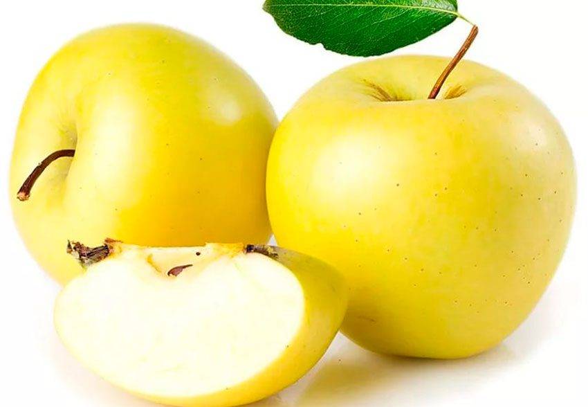 Не имеет значительных отличий от фруктов с зеленой либо красной кожурой. Калорийность практически всех сортов отличается друг от друга лишь незначительно. Четкой зависимости от цвета нет. Она варьируется в пределах 5-10 калорий. Сорт Голден полюбился многим за сладкий и приятный вкус. Он отличается длительным сроком хранения, подходит для сушки, консервирования, добавления в салаты.