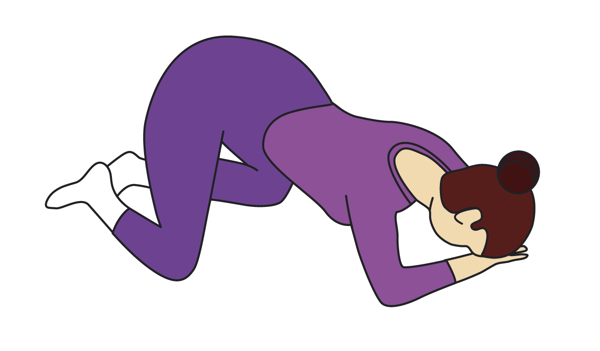 Исходное положение: упор на коленях (на четвереньках), голова опирается на руки. Далее напрячь мышцы тазового дна по направлению вверх и вовнутрь.