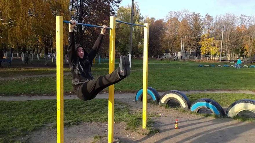 В общем-то, это подобное предыдущему упражнение с той лишь разницей, что у вас не будет упора для спины и придется удерживать вес на руках. Скручивания на перекладине подойдет для более тренированных людей. Если у вас слабый хват рук, то используйте специальные упоры для локтей. Эффективность подъема ног на турнике очень высокая.